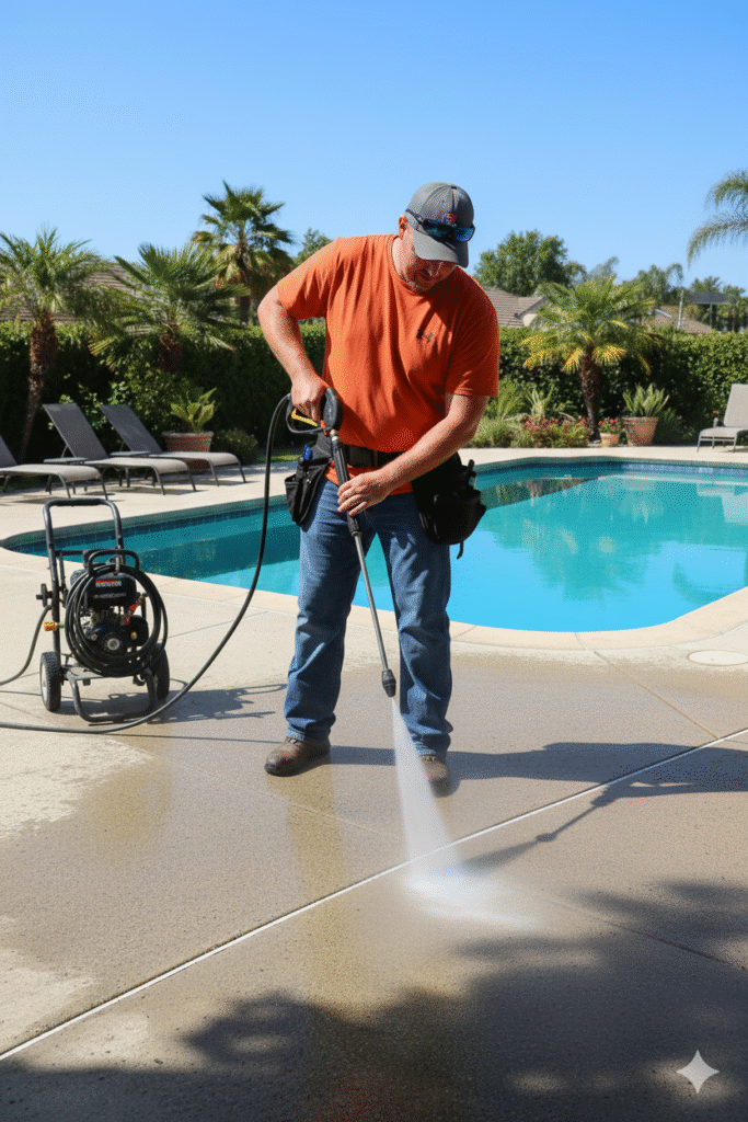- Pressure washing for driveways, sidewalks, and patios